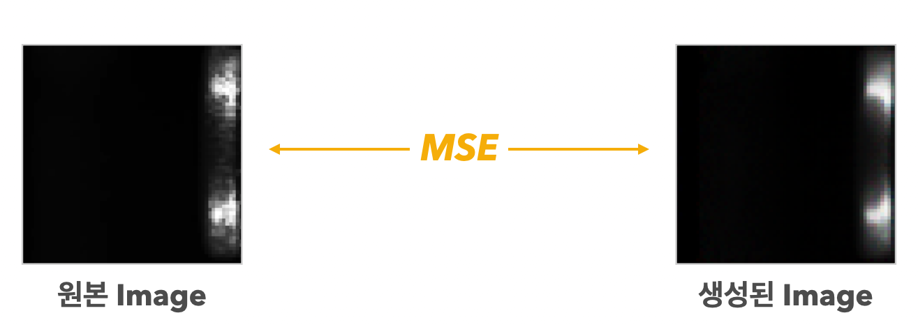 그렇게 생성된 이미지와 입력해 주었던 원본이미지와의 비교를 통해 잘 복원되었는지, 잘 복원되지 않았는지 판별을 하게 됩니다. 이 둘 사이의 오차를 구하기 위해 MSE(Mean Squared Error) 수식을 사용합니다. 해당 MSE값이 작다면 옳게 복원되었다는 뜻으로 정상이라 판단할 것이며, MSE값이 크다면 옳게 복원되지 못했다는 뜻으로 미압입이라 판단하게 될 것입니다.
