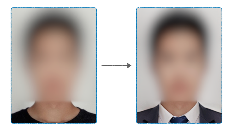 이것저것 바쁜 일이 많았던 친구는 일반 증명사진에 정장을 합성하기로 하죠.