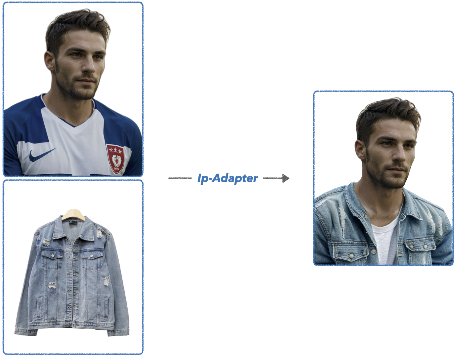 수많은 청자켓 중, 우리가 정확히 원하는 청자켓 이미지를 Ip Adapter를 활용해 prompt로 던져줘 보면,