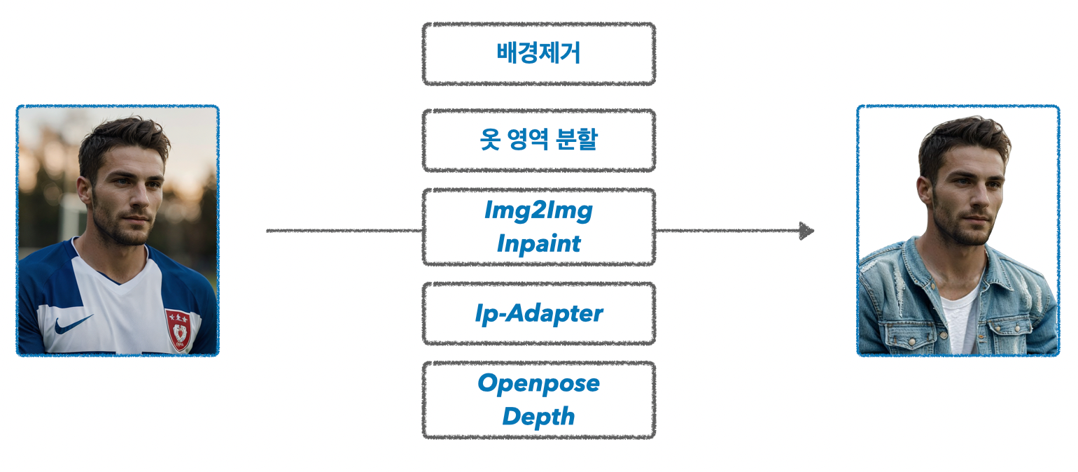 당시 저는 StableDiffusion을 활용해, 옷을 변경하는 로직을 구상 중이었습니다.