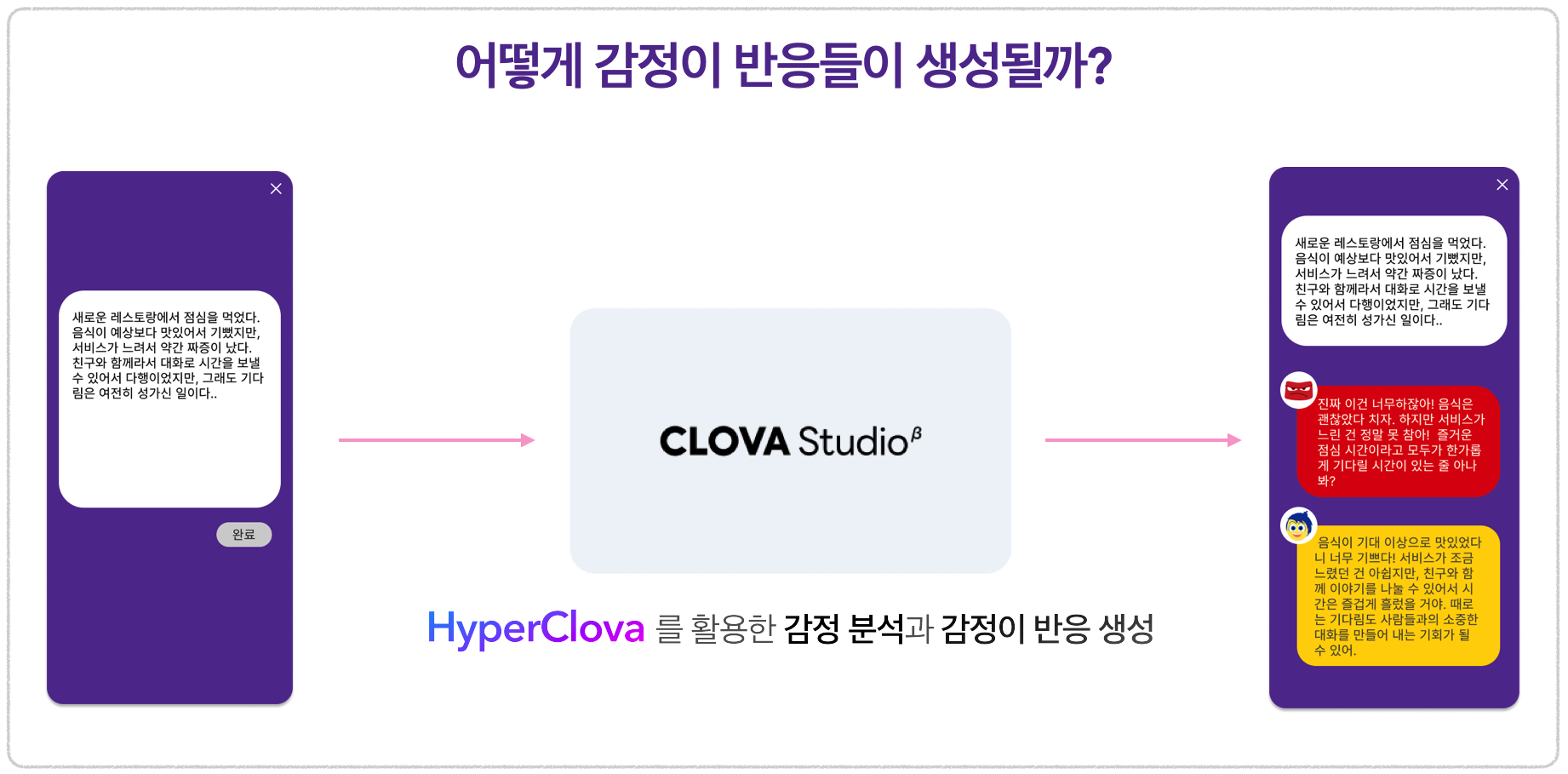 이 과정에서 LLM이 화자의 묘한 감정을 분석하여, 필요한 감정이 들(기쁨이, 슬픔이, 버럭이)을 선택한다. 그리고 영화 속 감정이들의 발화와 유사할 수 있도록 파인튜닝을 진행했는데, 이때 학습 데이터셋을 구성하기 위해 하이퍼클로바의 데이터생성 기법을 적용하였다.