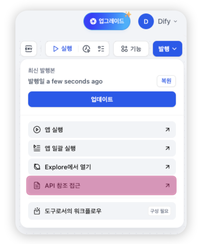 개인적으로 Dify의 가장 큰 장점은 API 엔드포인트를 간편하게 생성할 수 있다는 점입니다.