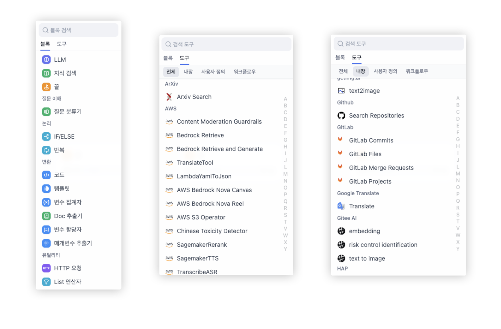 - No-Code/Low-Code 접근방식: 직관적인 웹 인터페이스를 통해 복잡한 AI 기능을 구현할 수 있습니다. 프롬프트 엔지니어링, 데이터 처리, API 통합 등을 코드 작성 없이 구현할 수 있습니다.